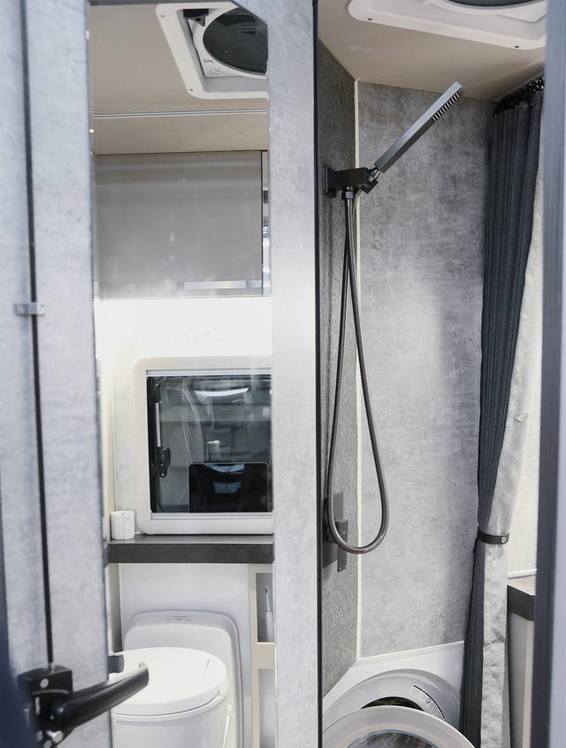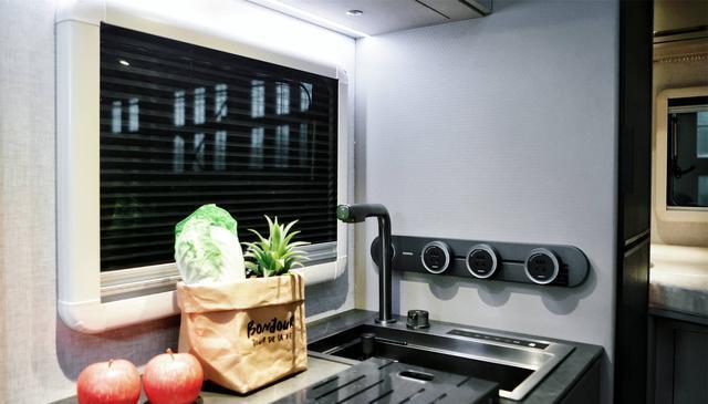 水电方面,48V电路搭配15度电磷酸铁锂电池(亿纬锂能车规级电芯)、5000W逆变器及1000W太阳能板,净水箱195L、灰水箱80L,配合48V/12V双电压发电机与防冻设计,满足长续航需求。